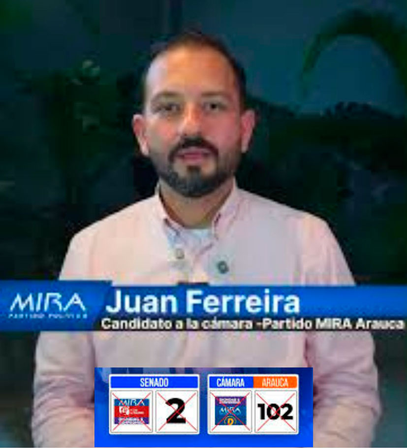Juan Ferreira, candidato del Partido MIRA, propone una política con valores, honestidad y compromiso real con Arauca y sus familias.